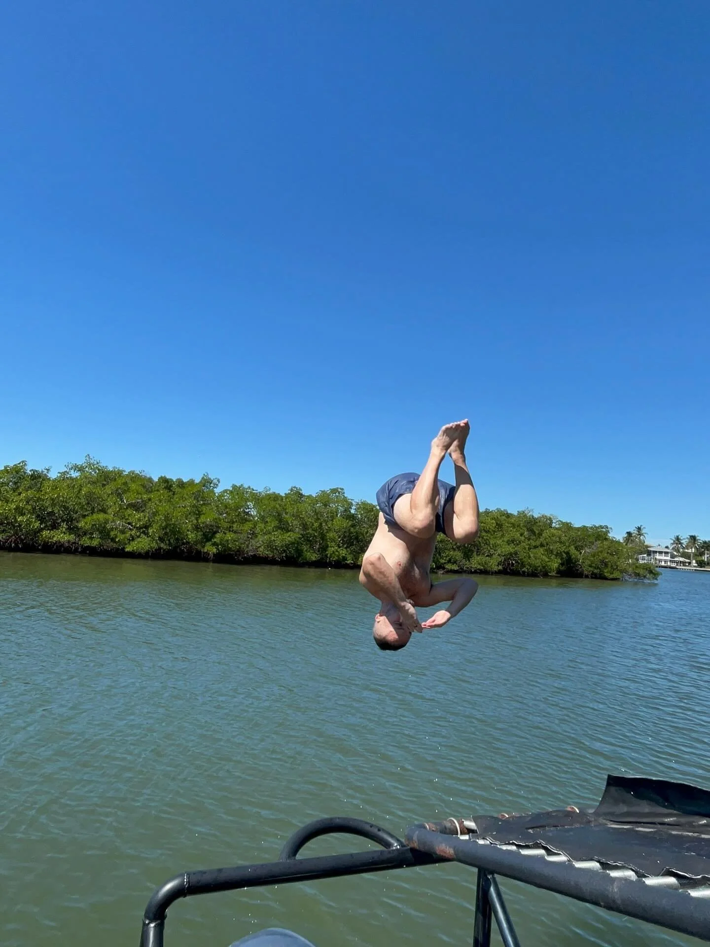 View fullsize Capt. Josh, one of our Captains for hire! We wanted to showcase his selfies that he just loves to send! If you love selfies, dolphins, water, book with us and hire josh!